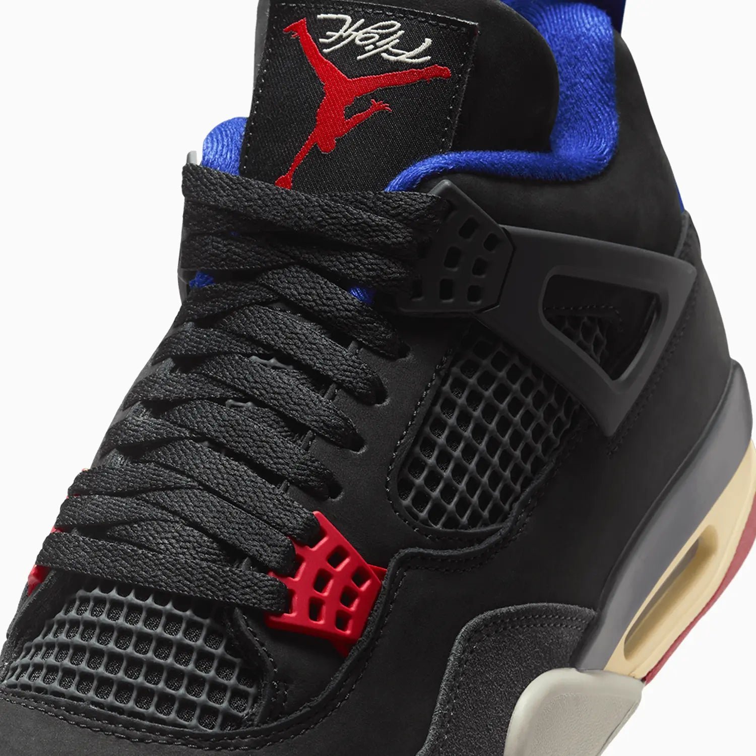 Step into a classic. This AJ4 throws it back with full-grain leather and premium textiles. Iconic design elements from the original, like floating eyestays and mesh-inspired accents, feel just as fresh as they did in ’89.